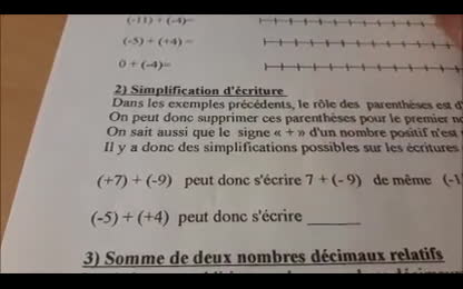 cours ,somme de décimaux relatifs.